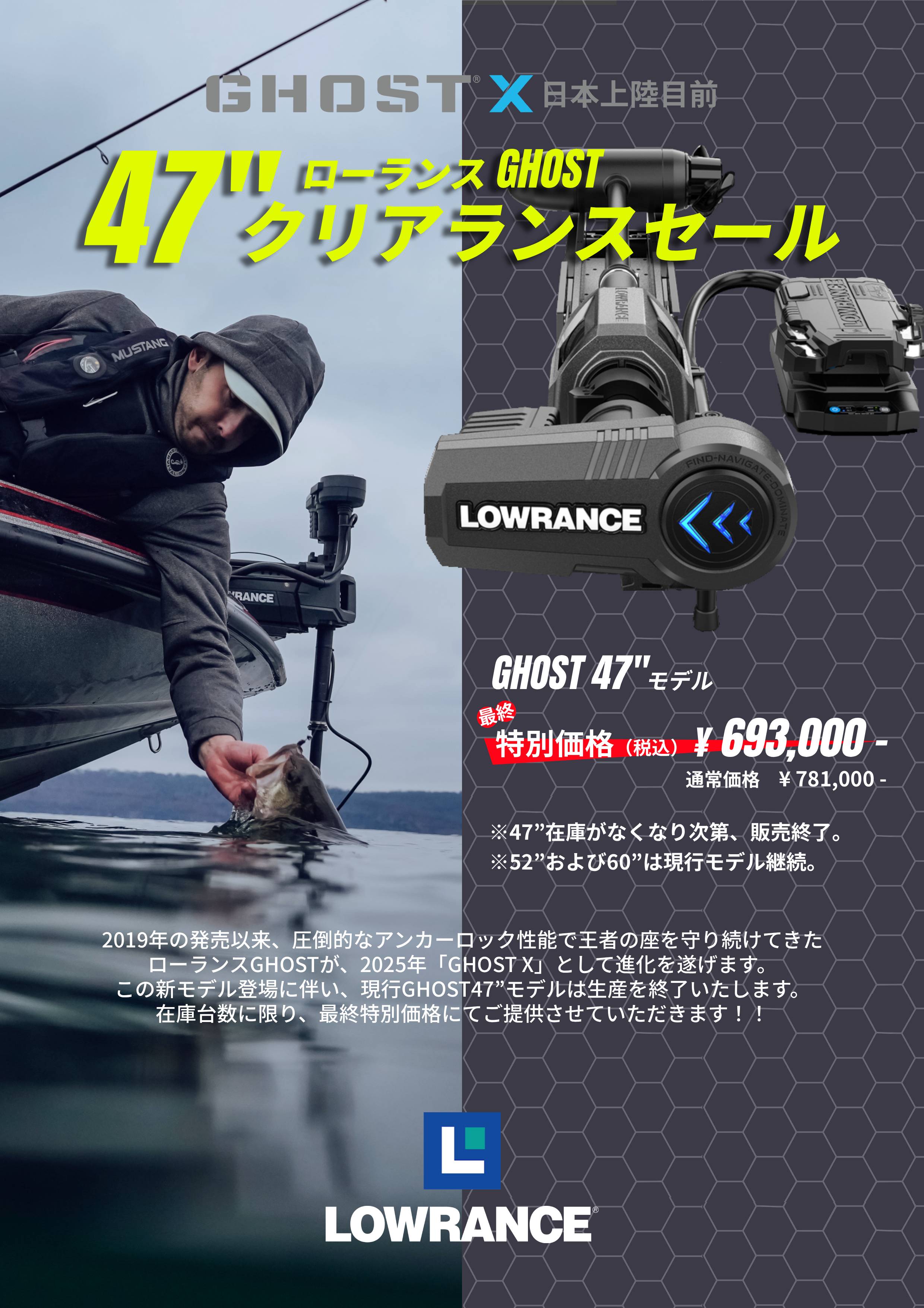 LOWRANCEのGHOST47インチモデルが、88,000円OFFの数量限定の大特価